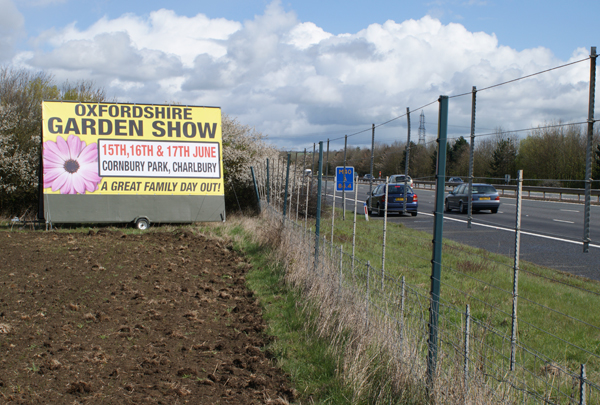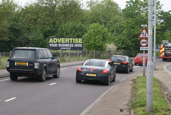 Each day, tens of thousands of motorists will pass, notice and read your advertisement. One single advert banner placed alongside one of the busy major M and A roads in South East of England can average 4.5 million drive pasts per month!